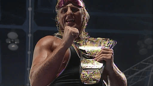 In another excellent collision between the two, Bret would defeat Owen to retain his title, but the image of the Rocket with the title remains an epic sight.