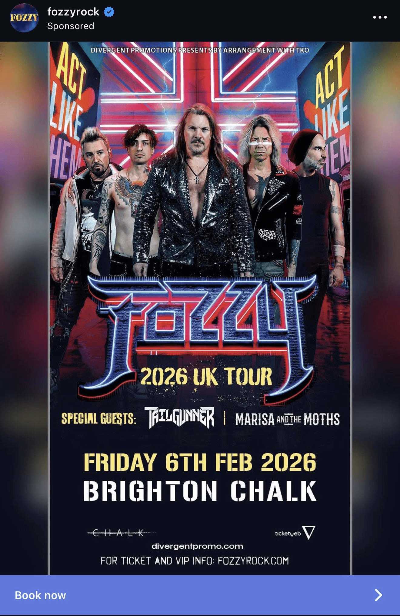 Rumors continue to circulate about Chris Jericho potentially returning to WWE, and recently, one advertisement for Fozzy garnered a lot of attention. The sponsored post on social media shared that Fozzy is coming to the UK in 2026, and that the tour is being presented by Divergent Promotions "by arrangement with TKO."