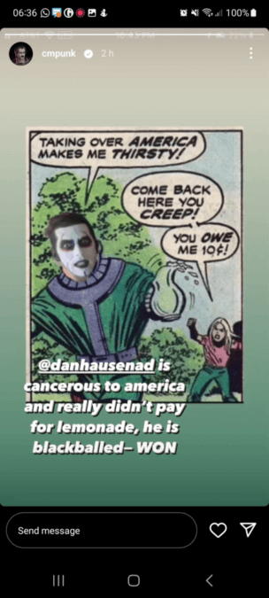 Punk joked that 'Danhausen' was "cancerous" and needed to be blackballed for this action, and also made reference to the Wrestling Observer Newsletter.