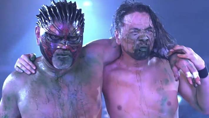 In an instant classic moment, the bout culminated in Nakamura apparently kissing Muta right on the mouth. Functionally speaking, he was stealing away Muta’s signature green mist, so that the WWE Superstar could spray it in Muta’s face and set up his trademark Bomaye strike (known as the Kinshasa in WWE). The finish was creative and poetic in relation to Muta’s career up to that point. All the more so, that kiss could be read as its own illustration of love for a living legend of the wrestling business.