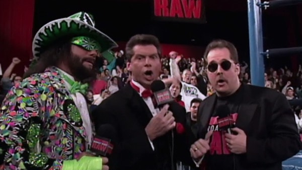 The first commentary team on Monday Night Raw was comprised of former WWE CEO Vince McMahon, comedian Rob Bartlett, and "Macho Man" Randy Savage. Bartlett didn't last long and was replaced by Bobby "The Brain" Heenan. Bobby eventually left for WCW and called the action for WCW Nitro during the Monday Night Wars.