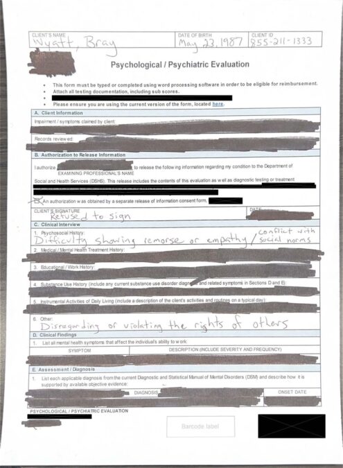 A QR code appeared during the video and takes fans to another secret WWE website. This time the website has a psychiatric evaluation of Bray Wyatt. In the evaluation, Bray is stated to have "difficulty showing remorse or empathy". It was also listed under "other" that Bray was "disregarding or violating the rights of others". You can check out the full psychological evaluation of Bray Wyatt below.