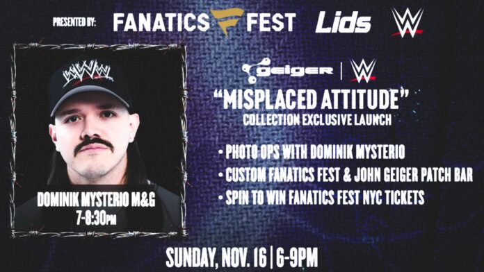 The appearance coincides with the exclusive launch of the Geiger x WWE ‘Misplaced Attitude’ collection, a limited-edition collaboration with designer John Geiger available only at this location. Fans attending the event will also have access to a custom Fanatics Fest and John Geiger patch bar to personalize their purchases.